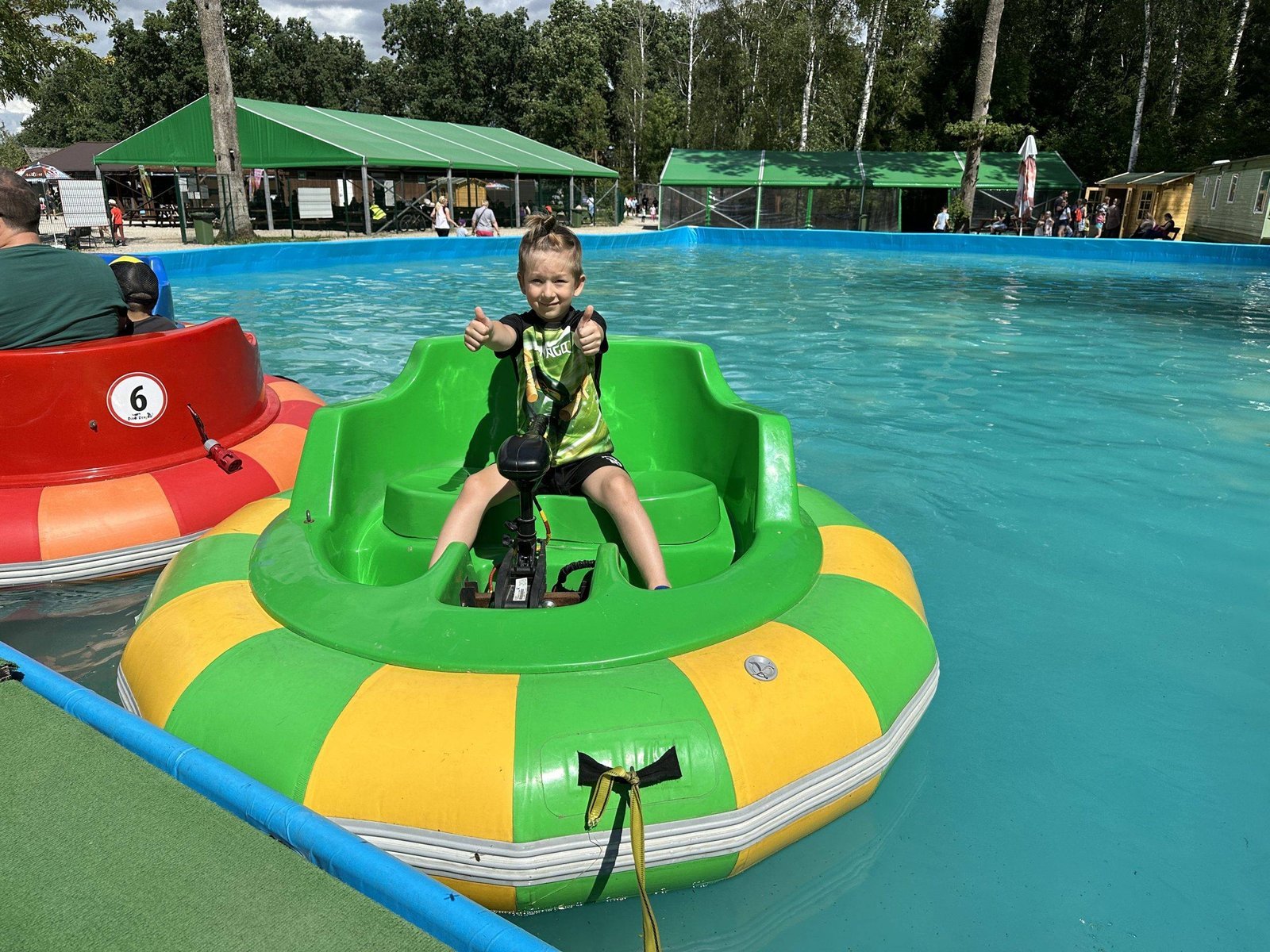 Have swimwear for the kids. There are trampolines with water, as well as a water boat pool for children to swim in. It’s great that parents have picnic tables, benches and gazebos near the trampoline area so that they don’t have to wait for their children in the sun. It seems like a small thing – but it is very practical. We visited when it was +25, so waiting for Matthew entertaining with a baby would have been a pain rather than a shade.