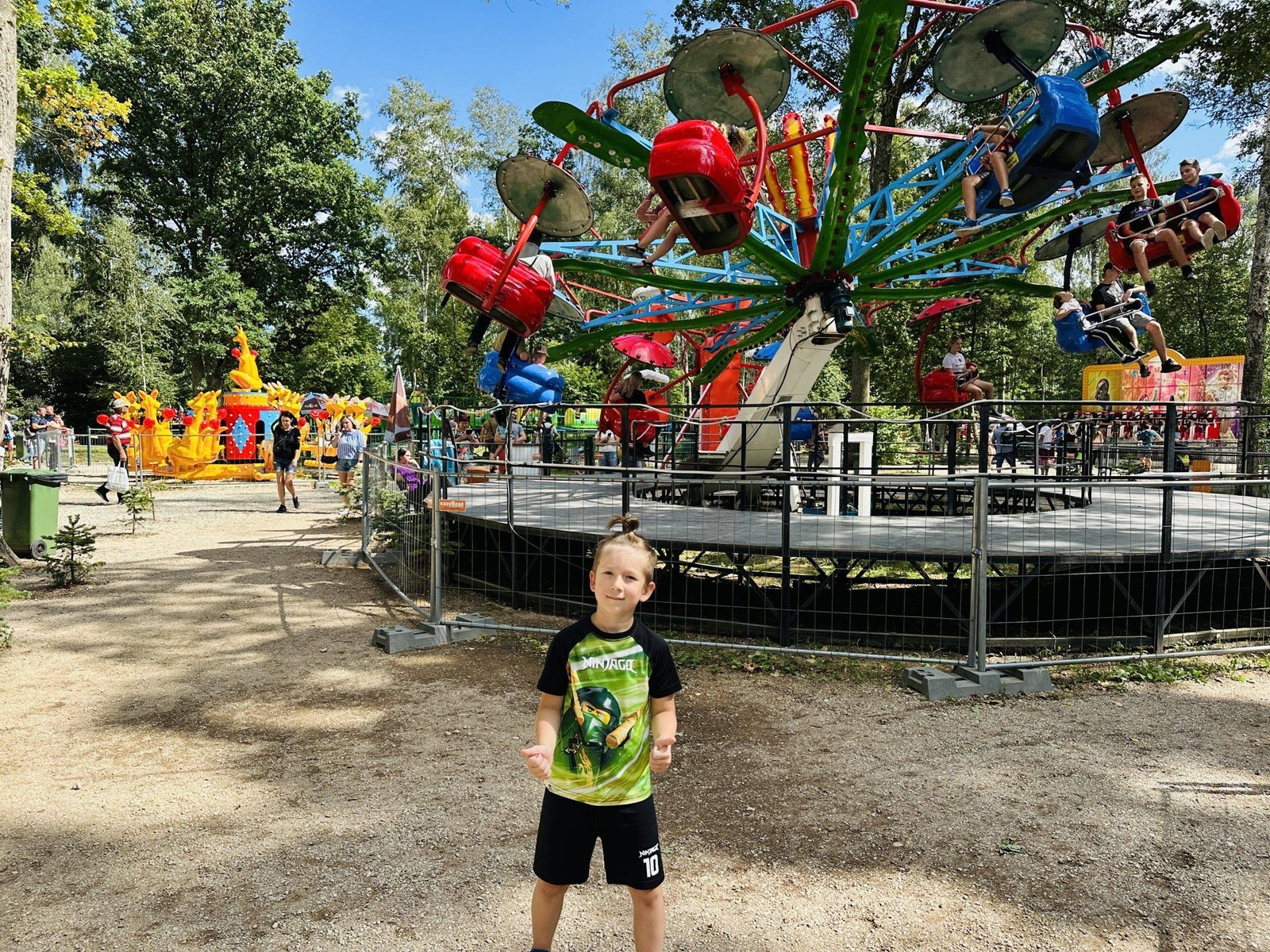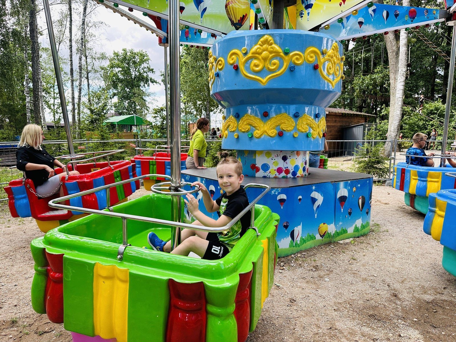 - Carousel “Balloons”, carousel “Flying chairs”, carousel “Bitutes”, carousel “The Train”, carousel “Kangaroo”, carousel “Miami ride”, carousel with rails “Worm”. There is probably no child who would not like carousels. Motiejs is no exception, so we spent a lot of time here and even went around it several times! If the children are smaller and afraid – you can use the carousels together with the children. I still find it unbelievable that you don’t have to pay extra for the carousels, because in the city one ride costs 3 -5 euros, so here a ticket that costs 7.5/9 euros pays for itself after just three turns;
