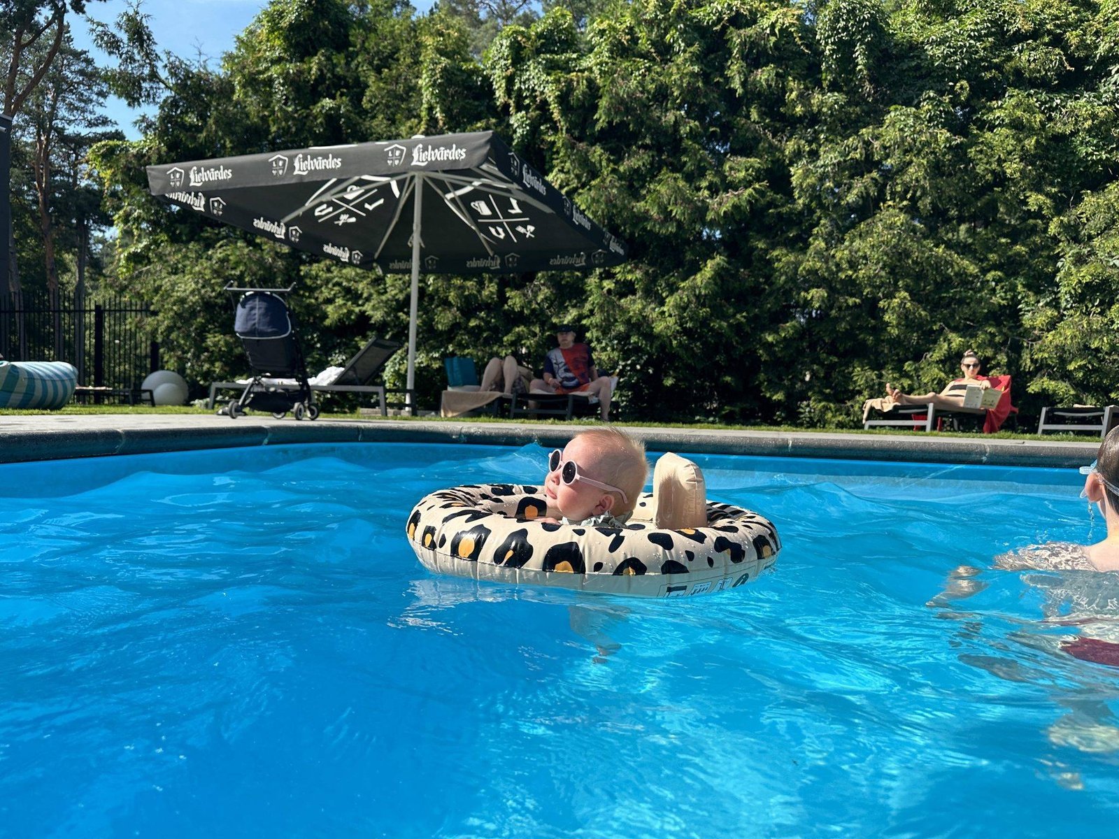 A seasonal outside pool is also located here. It was a real salvation for us – because when we were in Jūrmala, there was no wind and no waves – there was a lot of grass floating in the sea, so swimming was not possible. Besides, I personally always find it very cold to swim in the Baltic Sea, while the pool water is warm. There are also sunbeds by the pool and a bar. By the way, the outdoor pool can be used from 8 am to 10 pm. So you can have a great bath before going to bed.