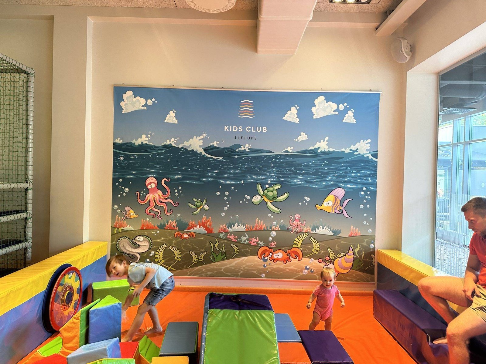 Rest in a hotel in Jūrmala by the sea in the hotel Semarah Lielupe SPA & Conferences will definitely be remembered for a long time by the whole family. Because the hotel is perfectly suited for recreation with children. The hotel has an excellent kids club and extra large games room. It is paid – but definitely worth a visit. You can come here to play with your children yourself or you can leave them with care. The room is suitable for children from the smallest, even babies like our Paulė to the biggest. There is a trampoline, a ball pool, a climbing frame, and interactive games. By the way, one interactive game table was very interesting even for me!