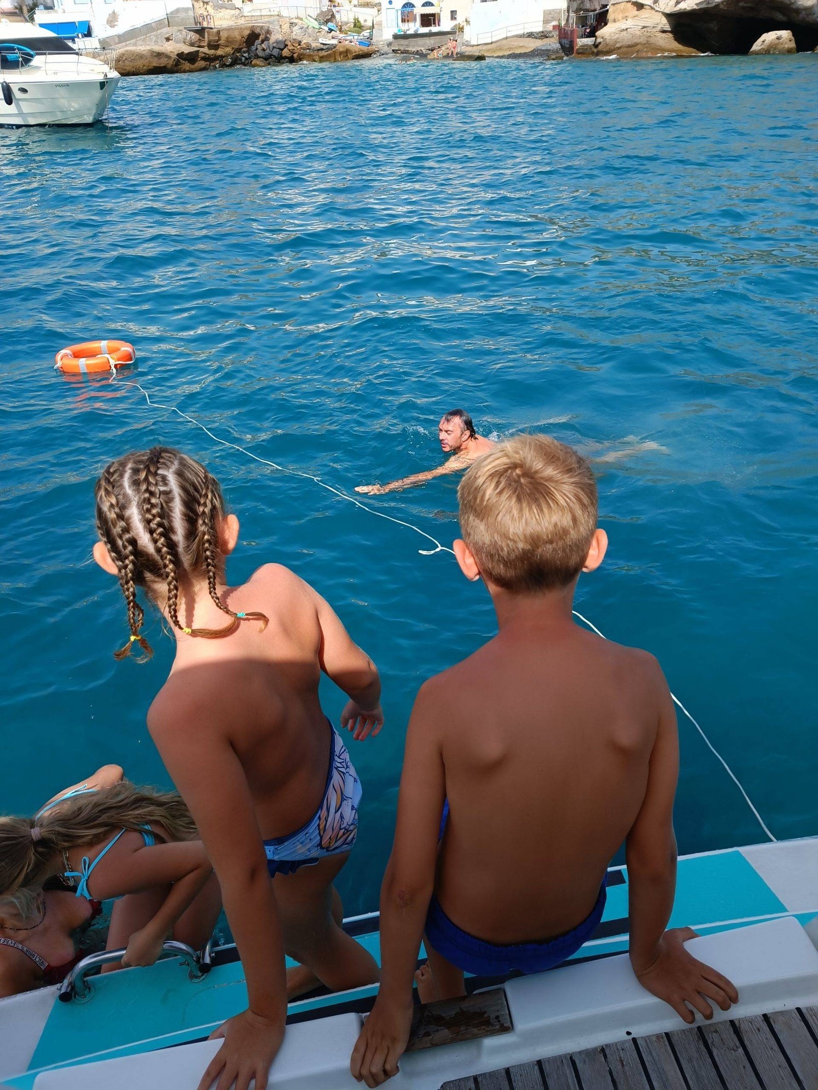 Price of special “Travel 4 kids” sailing: 500 eur/catamaran with captain/3 hours. swimming