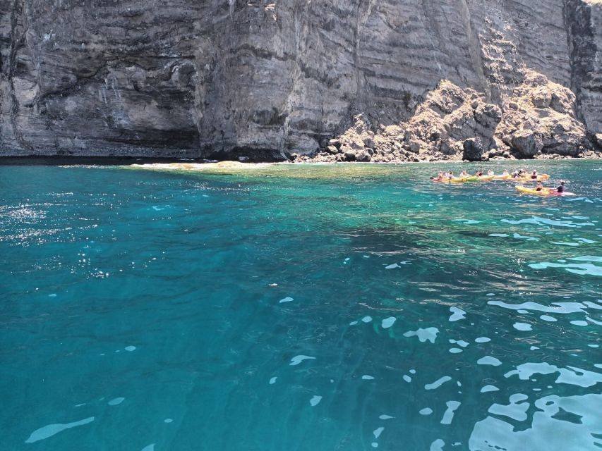 On this three-hour cruise from Los Gigantes port, observe a variety of marine life and stop for swimming and snorkeling in a secluded area. After the whale watching excursion, you can admire the giant rock that rises to a height of about 600 meters and stop for 30 minutes at the base of the cliffs, where there is a cove perfect for swimming or for snorkeling.