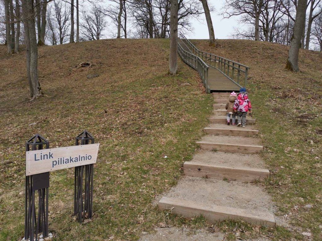 Let’s travel further. This time we turned to the left not out of curiosity, but because there was a sign on the main road – Apuolė mound. In fact, we were already in the mound almost a year ago, so it was interesting to compare for ourselves how the children’s behavior would be different. The entire road to the Apuolė hill is paved, and upon arrival you will definitely find a place for your car.