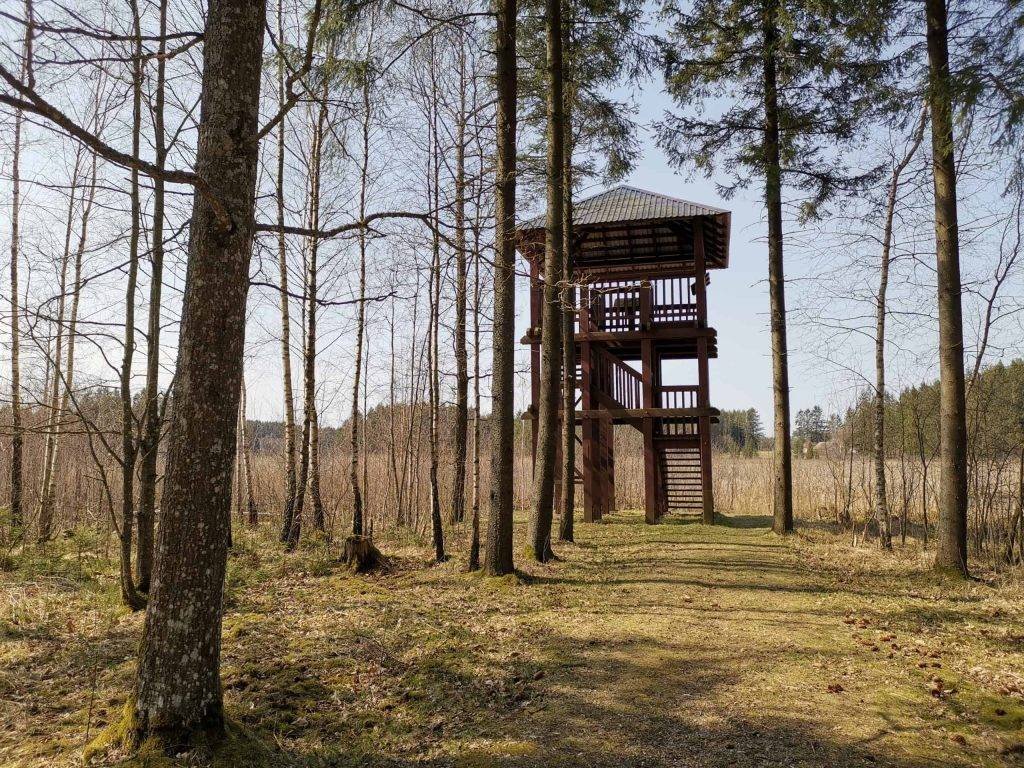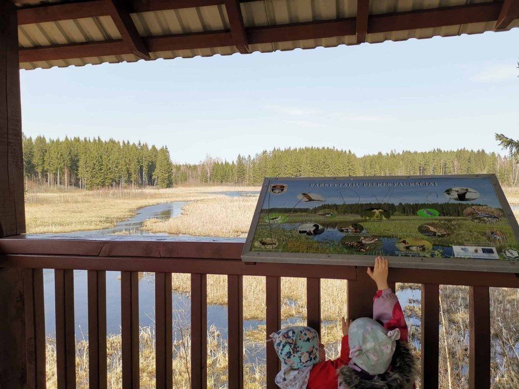 The tower is not high, but it is enough to see the Barstytaliai marsh, and at the top you can find information about what animals and birds live here.