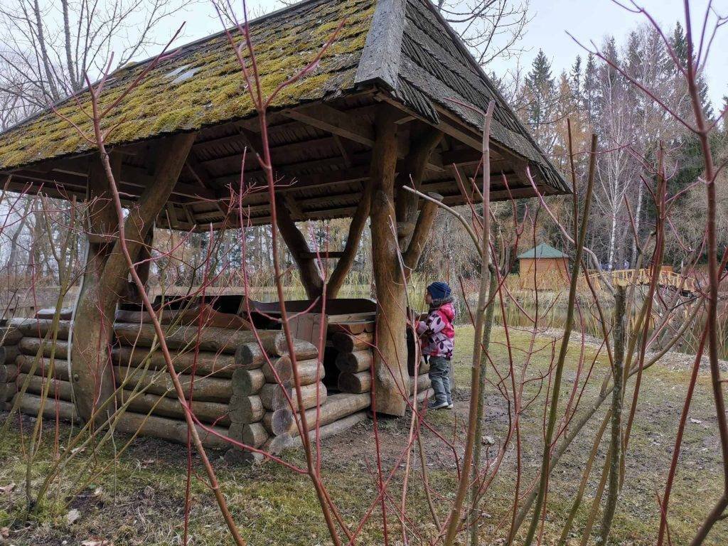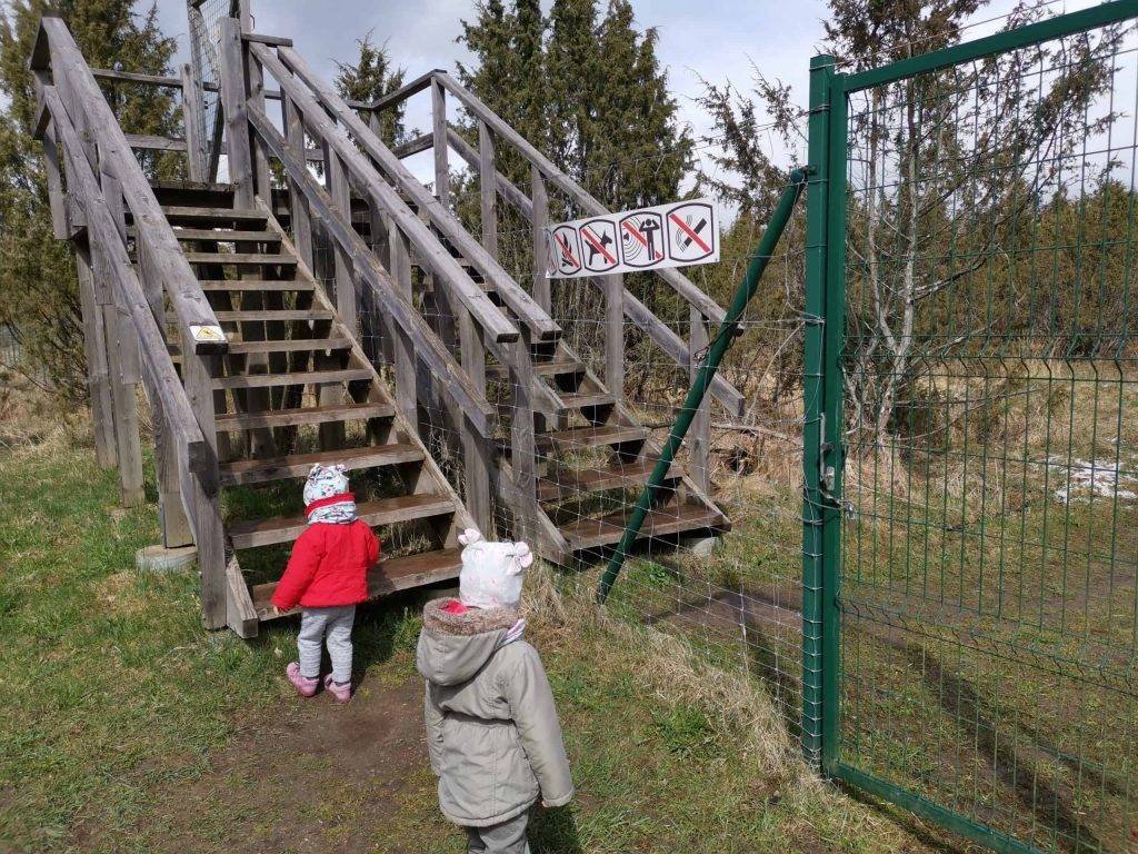 Probably no one has any questions about playgrounds or places adapted for changing babies. You probably rarely find such places in nature. However, a baby carriage can easily pass through that “forest path”. Our girls probably liked the organized race in this place the most: “who will reach the observation tower first”, and information about the inhabitants of the swamp.