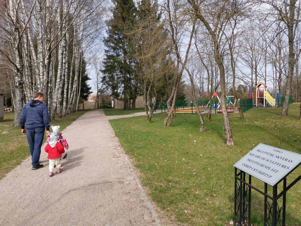 We decided to go on a traditional Sunday family trip and visit I. Navidanskas Botanical Park, Skuodas City Park and Apuolė hill on the still quite cold second weekend of April. The first planned object was Skuodas Park, but the children didn’t care about it at all, so the route had to be turned upside down. And this time the family excursion started from I. Navidanskas Botanical Park.