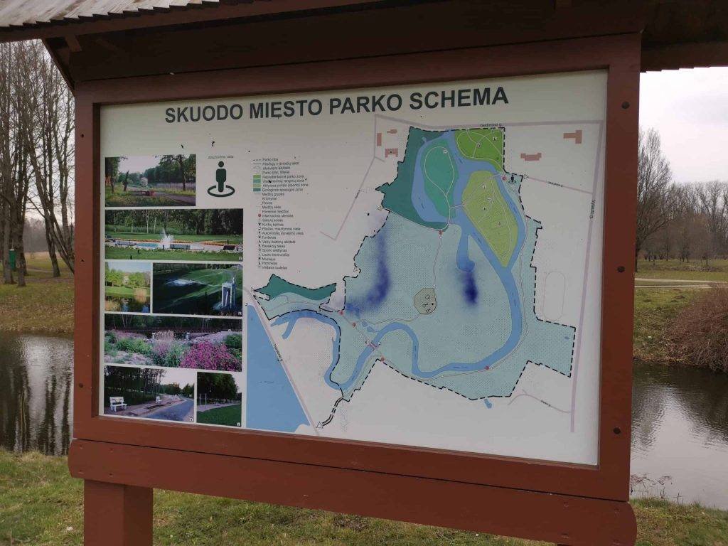 After visiting the Apuolė mound, we chose the last point of the day’s journey – Skuodas city park. There is certainly no shortage of pitches around this park. And the park itself really surprised with its organized environment.
