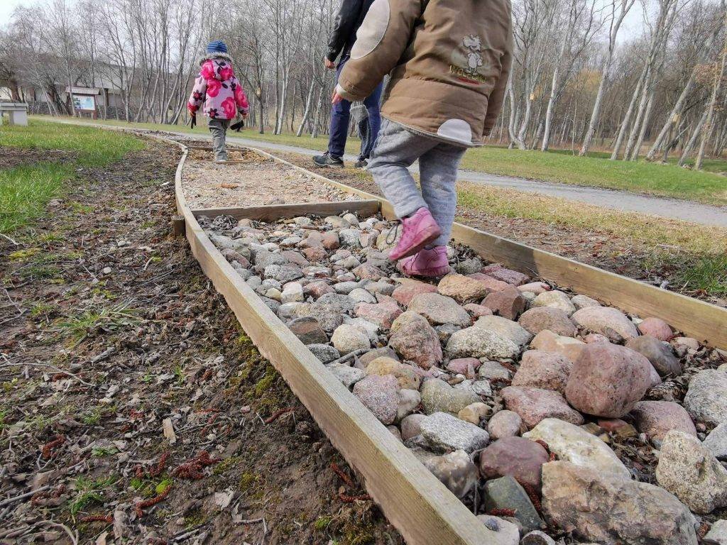 It turns out that we started our route-hike along the Šaukliai Boulder Trail from the end (we found out about this at the end, after seeing 2 or 3 arrows. But anyway, there is no big difference from which side you start walking. The route is suitable for walking with small children. Well, at least for me and for my two girls (3 and 4 years old), this route was not difficult.