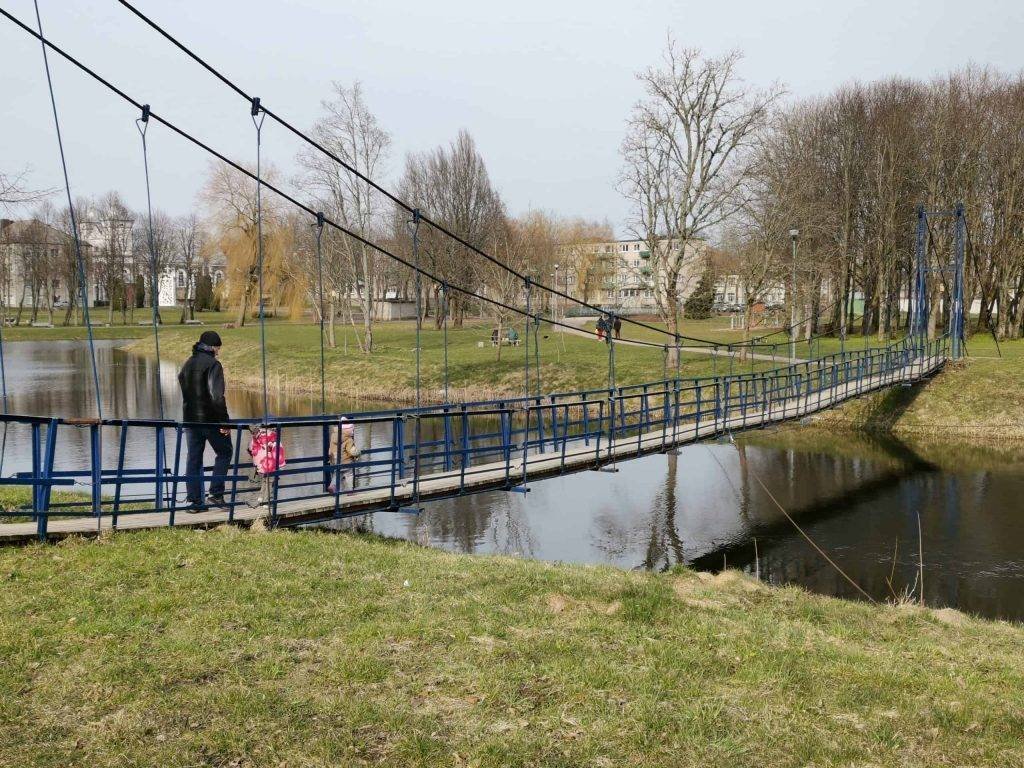 You can go around the Skuodas City Park on the “Health Path”. While walking along this path, you will pass: various sculptures, a barefoot path, a monkey bridge, a playground, outdoor exercise areas. There is also a fountain in the park, but it is not working at the moment.