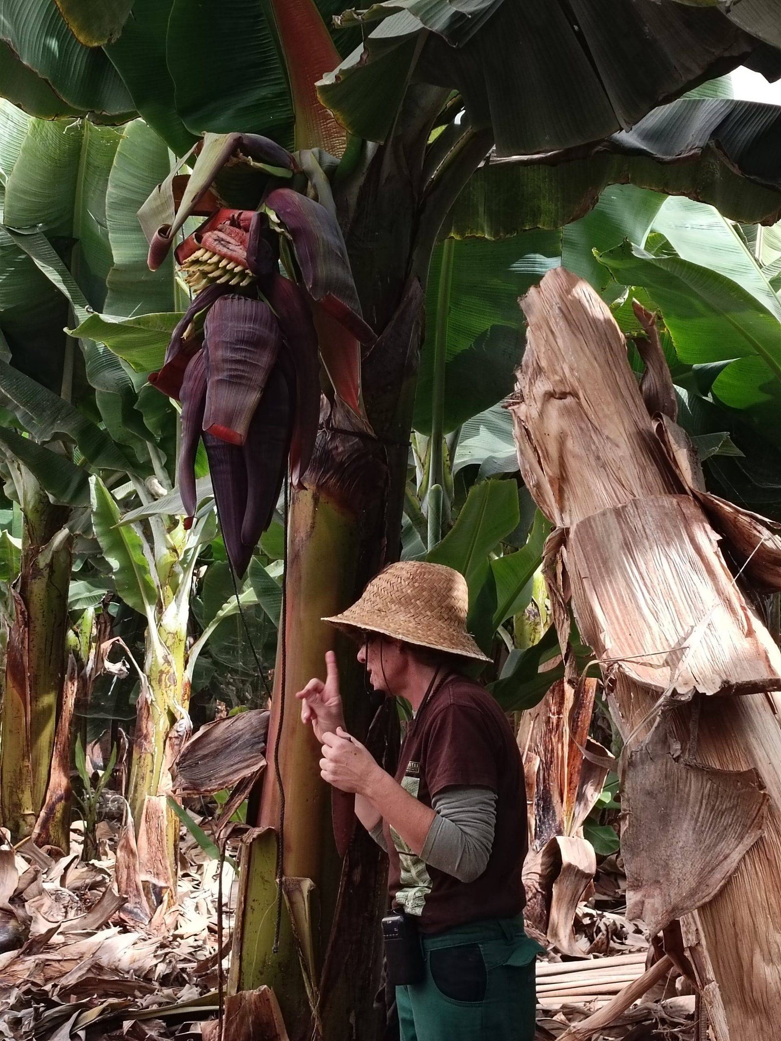 The plantation covers an area of around 8 hectares and there grow 98% banana and 2% fruit trees such as mangoes, papayas and avocados.