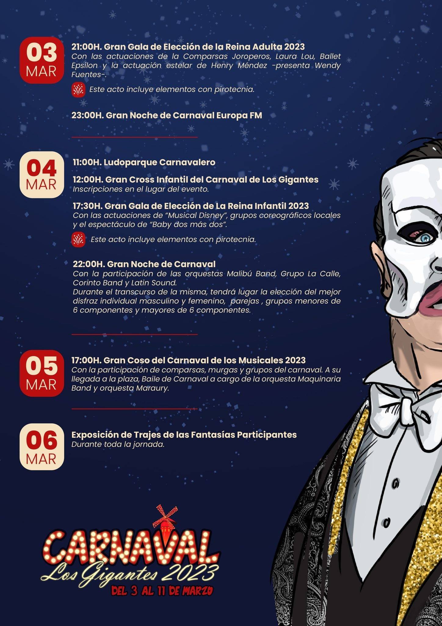 Los Gigantes has already announced the Carnival program. The carnival will take place on March 3-10. Follow the information in the Los Gigantes Carnival FB Account.