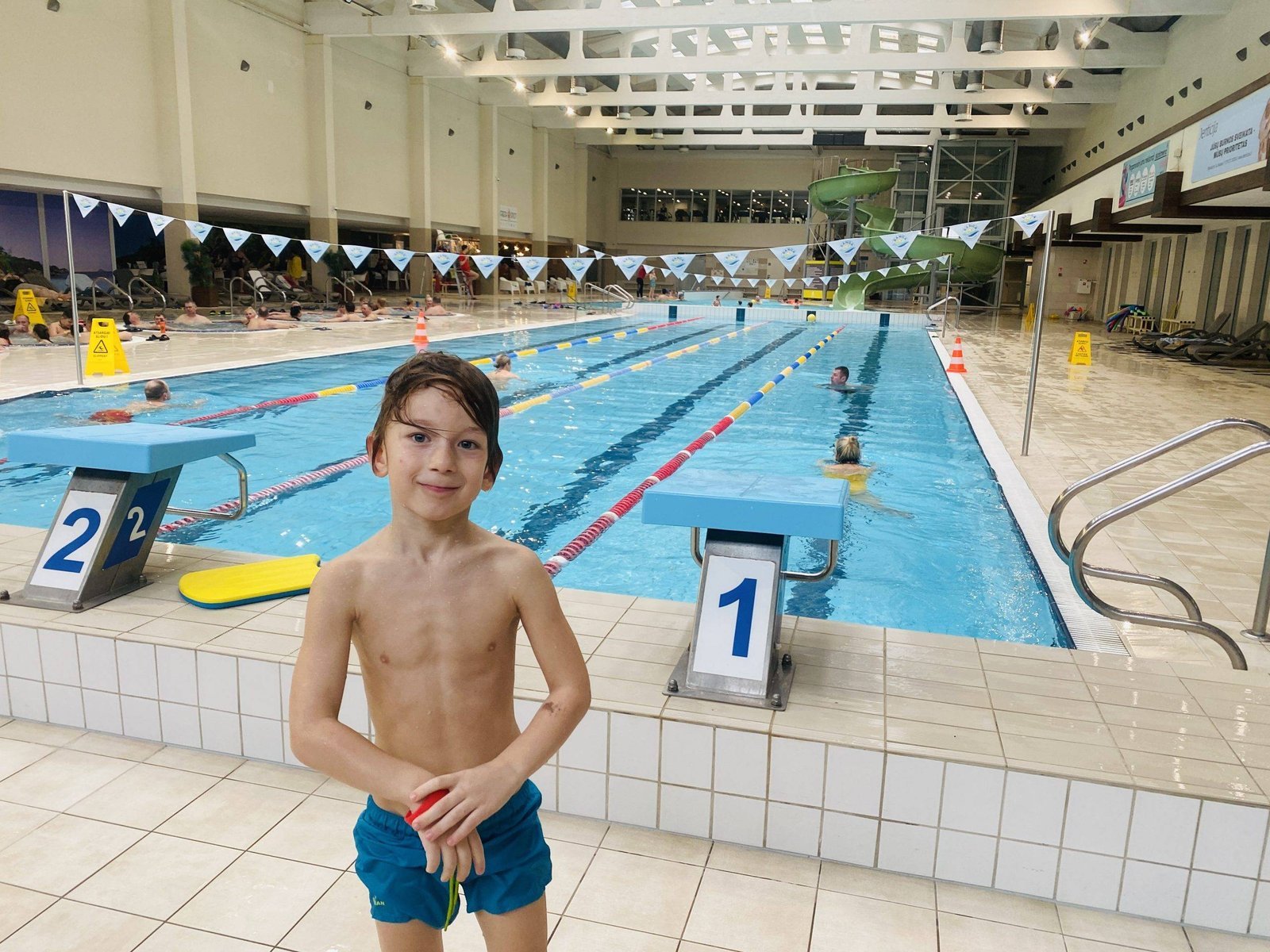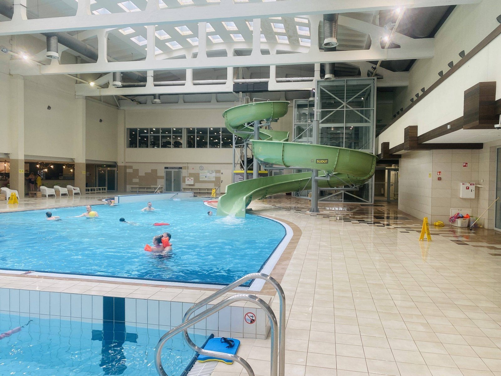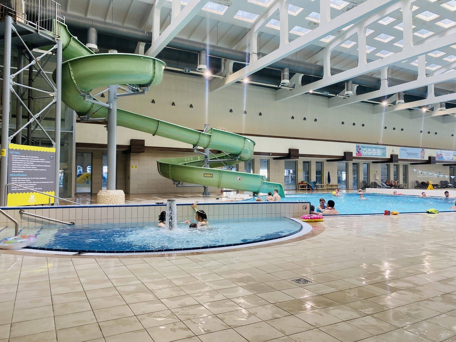 Perhaps the biggest advantage of this pool is the water slide. For five-year-old Motiejus, it was a total hit in this pool. Because of this slide, Motiejus would definitely say that Girstutis is the best pool with children in Kaunas. It’s great that children can not only swim, bathe, but also go for a ride. And most importantly, you don’t need to go to the water park in Druskininkai.
