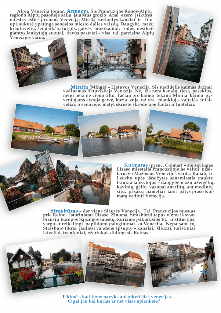 The Venices of Europe. Maklinėtojai visited 6 cities like Venice, which they will tell you about. The “real” Venice is one of the most famous cities in the world, in the Veneto region of Italy, located on 118 islands and islets connected by more than 400 bridges. The city was so impressive that it “gave” its name not only to ten other Venices around the world (nine Venices are in the USA, one in Canada), but even to the country – Venezuela (the Italian traveler Amergas Vespucci called the country “Veneziola”, i.e. “Little Venice”).