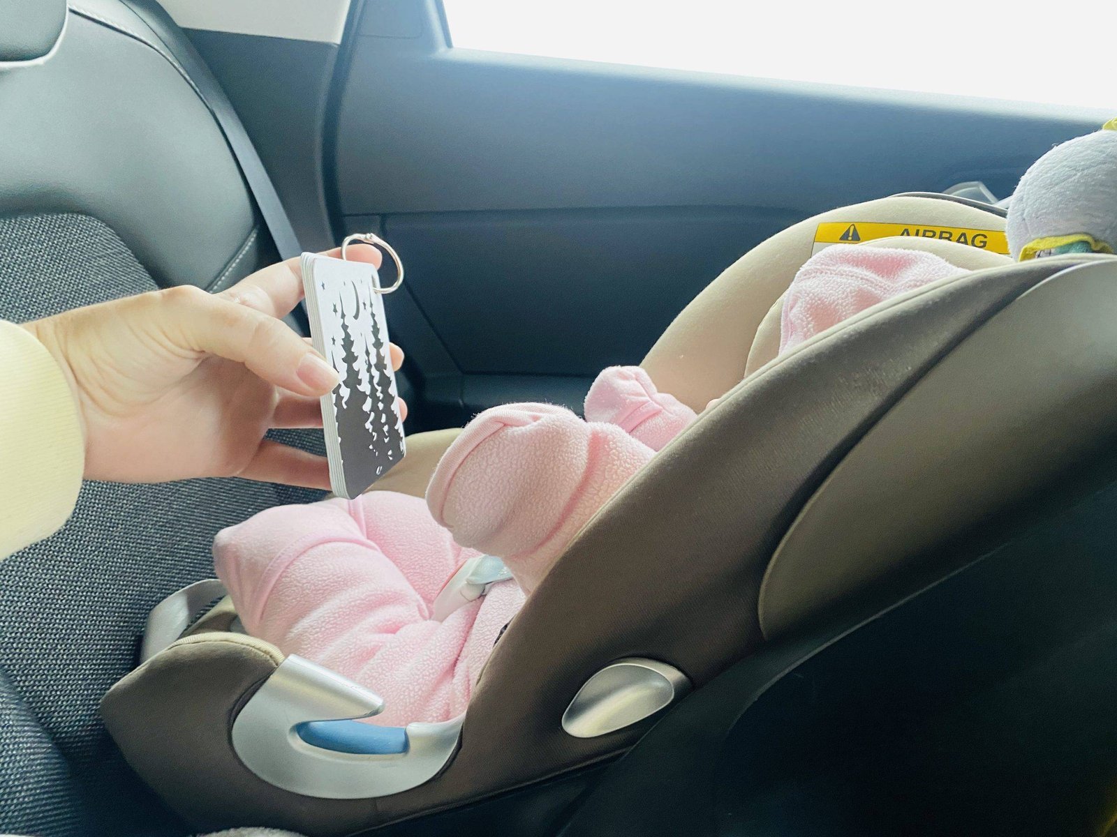 When traveling by car, show the cards to the baby while he is sitting in the car seat. In no case do not remove the baby from the car seat while driving – it is extremely unsafe.