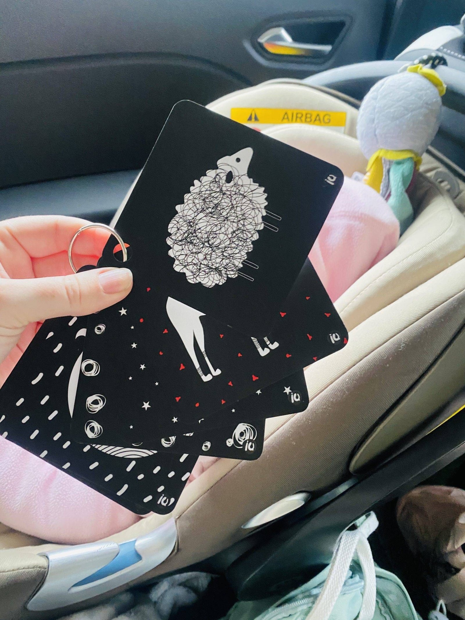 IMPORTANT – an interesting toy or other tool that will ensure the baby’s occupation should appear among the most necessary items. In our opinion, the baby’s occupation should always be combined with the baby’s education. Do you think that it is too early to educate a newborn or a baby? Absolutely not, it’s never too early to start raising a child. We chose the one created by a mother in Lithuania for her daughter Rusne for her first trips and raising a baby. These are contrast cards “Aikiu”. These cards are not only simple, but also specially adapted for travel. We bought these cards before Paula’s first trip to Poland, when she was only three weeks old.