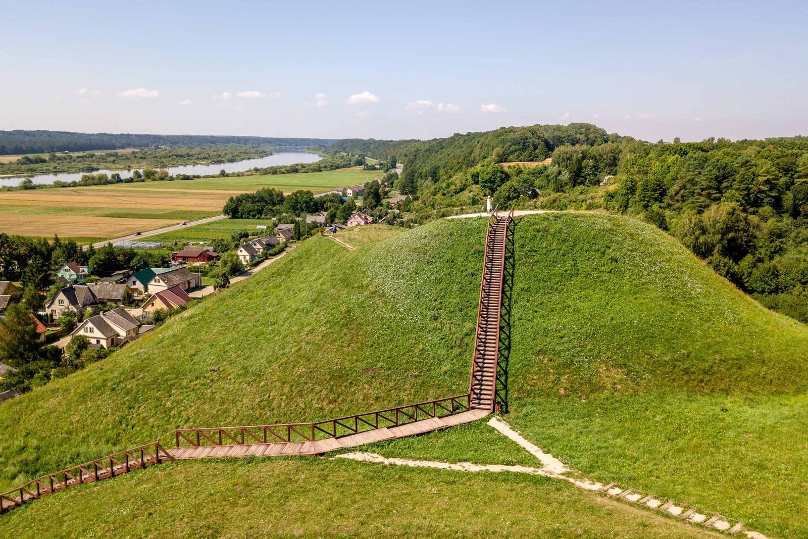 Another breathtaking mound stands right next to the Jurbarkas-Kaunas road. It is located on the highland cape, on the right banks of the Nemunas and the left banks of the Kartupis stream. It is surrounded by the Kartupis stream from the west and north, and the Nemunas valley from the south. The slopes of the mound are steep, 20 m. height. It is believed that the first castle that was attacked by the Teutonic Knights stood here. When the views on the climb take away the promise, the thought of the castle standing, the crusaders attacking on the steep slopes and the hillforts of our ancestors defending themselves, is simply breathtaking. Wouldn’t you like to tell your children such true and vivid stories?