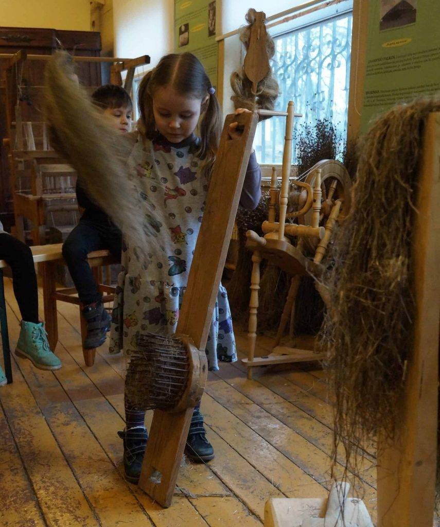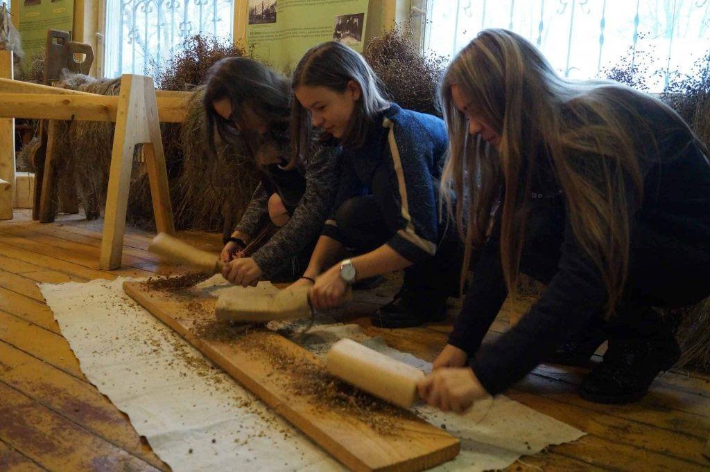 During the activity, the unique place of flax in traditional culture is highlighted, the community traditions of taluks and palakki parties are introduced, and the old flax processing works are learned: flax carding, threshing, threshing, carding, combing, spinning.