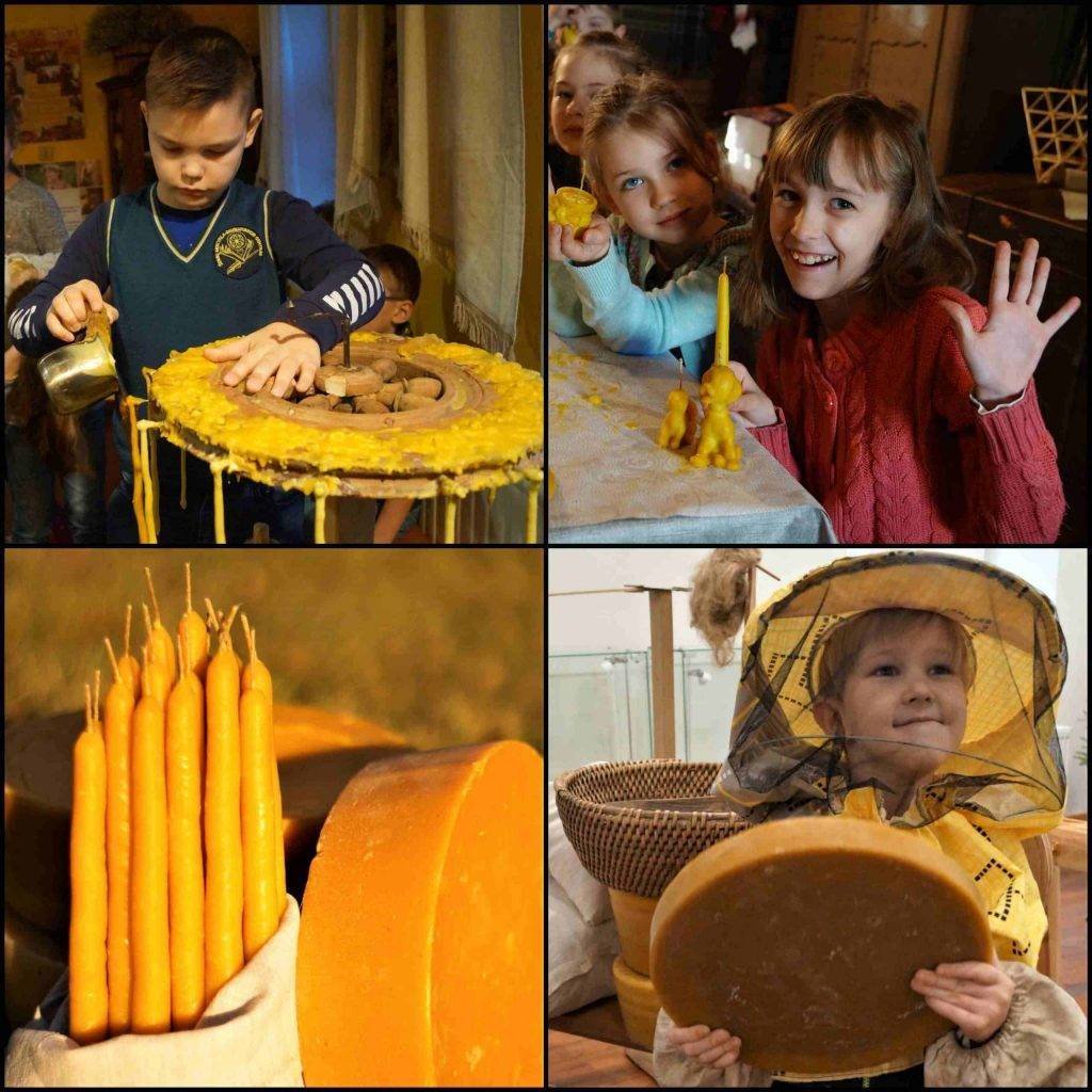 The participants of the activity are introduced to the structure of the bee family, bee products, and various ways of making candles. Candles are cast from natural wax using the old pouring method and with a mold.
