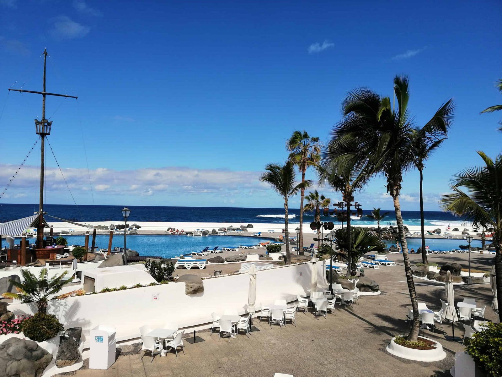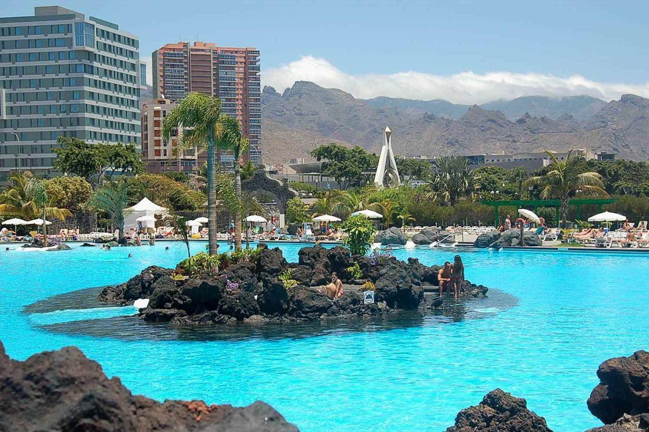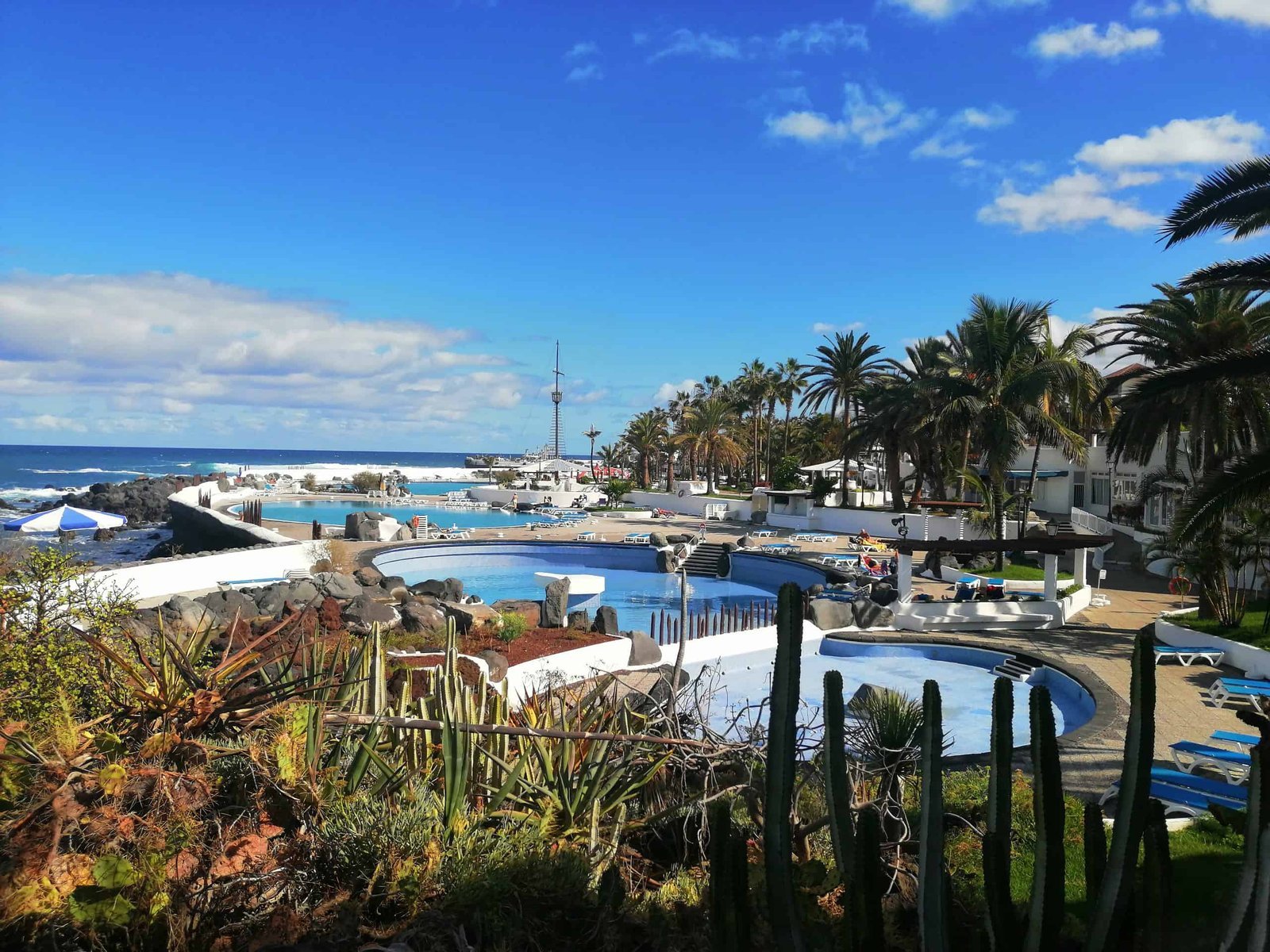 The 22,000 m2 complex is located on the southern coast of Tenerife’s capital Santa Cruz, offering unparalleled views of the Tenerife Auditorium designed by Santiago Calatrava, the Palmetum Botanical Garden and the ocean. Easily accessible by car and public transport, this leisure center has a large car park. In the park, the black color of the volcanic stone contrasts with the blue of the crystal waters and the green of the palm trees and flowers that decorate the space. This is the work of Cesar Manrique, a famous artist from Lanzarote.