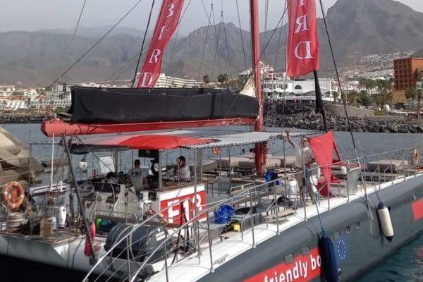 Enjoy an eco-yacht on the coast of the Canary Islands, which has been awarded the “Blue Ship” flag by the local authorities, confirming that the vessel meets the legal requirements for safe and sustainable operations.