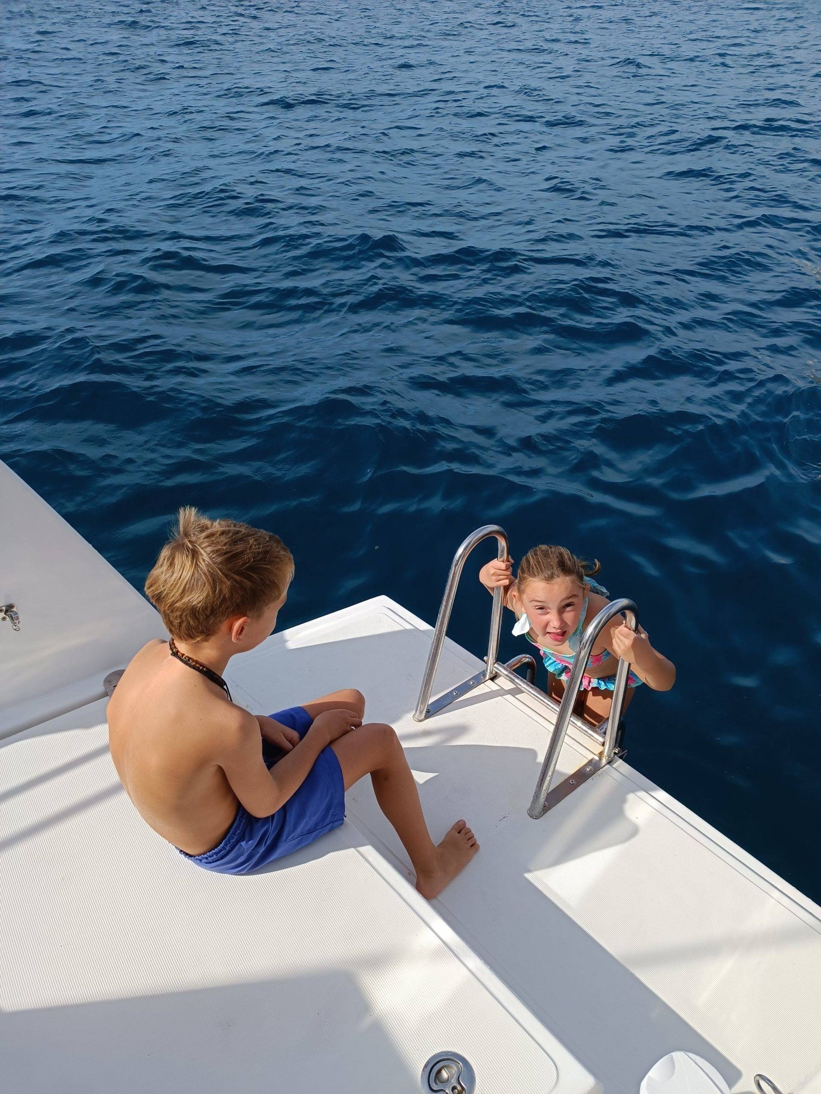 Price of special “Travel with children” sailing: 500 eur/catamaran with captain/3 hours swimming.